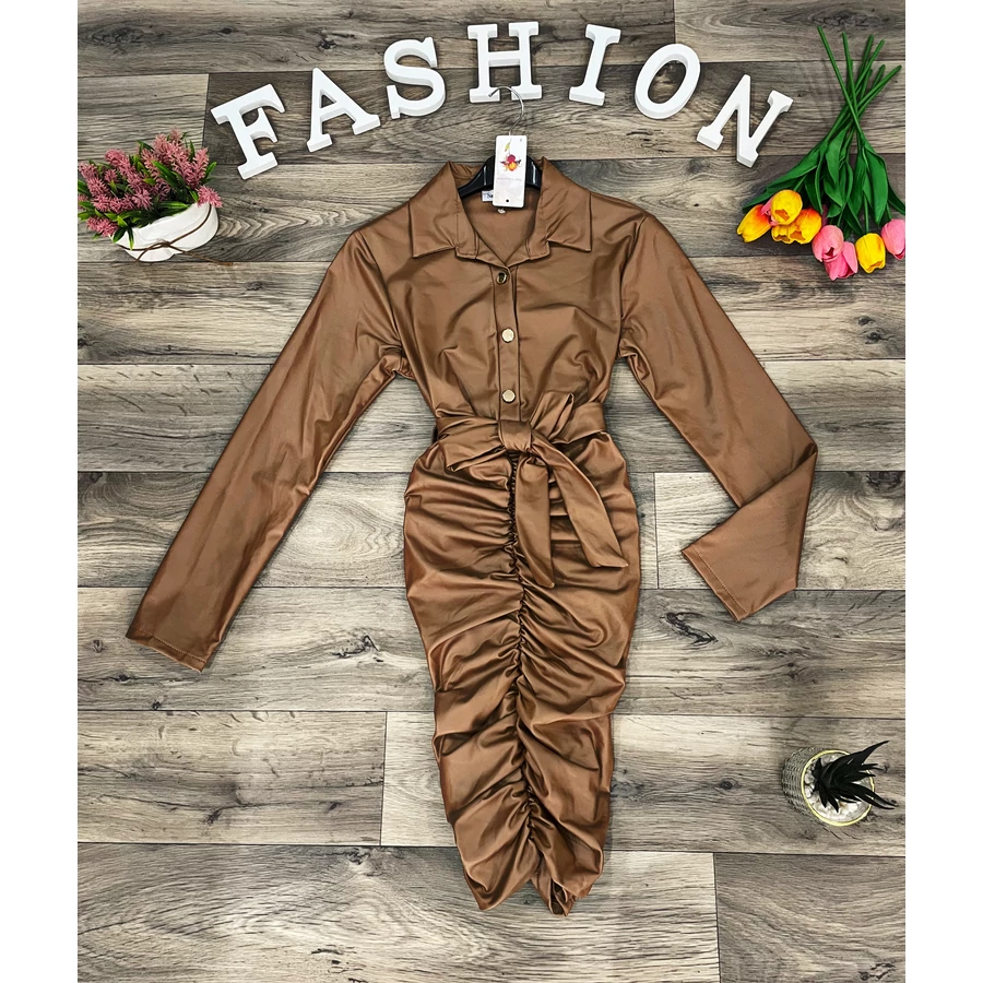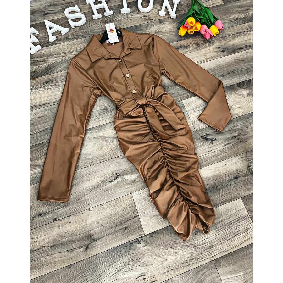 Elasztikus anyagú testhezálló műbőr hatású ruha.