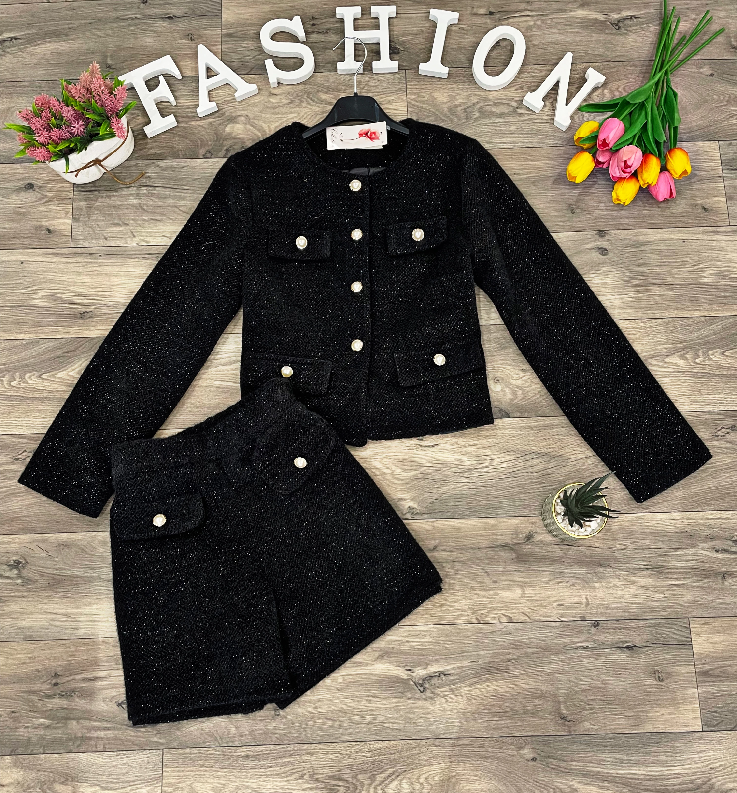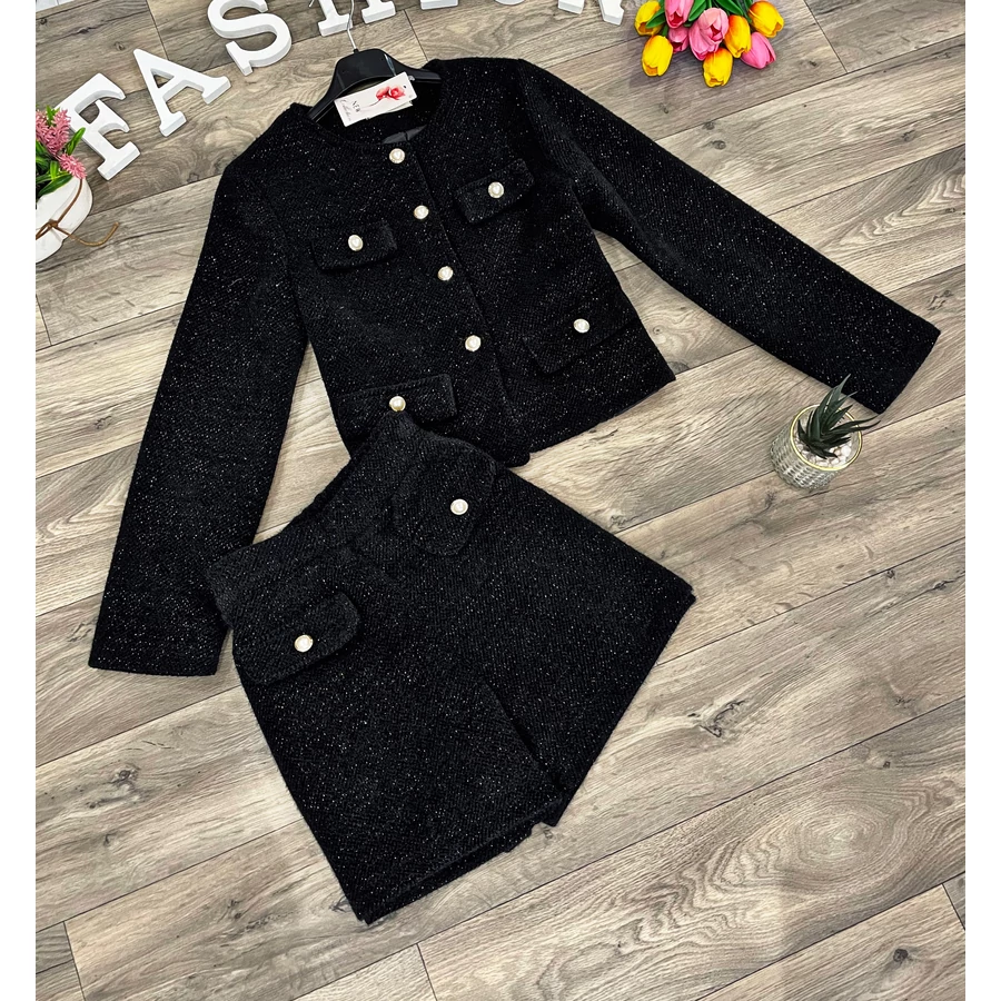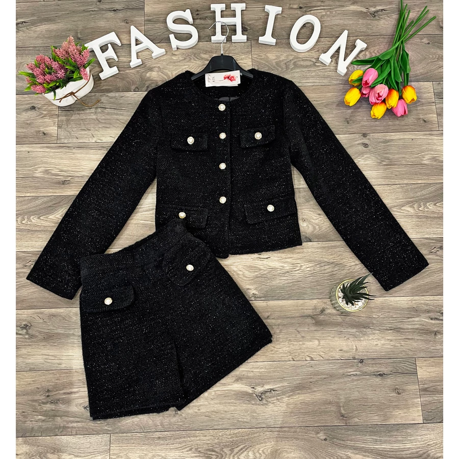 Pihe-puha elasztikus anyagú kötött rövidnadrágos elegáns szett.