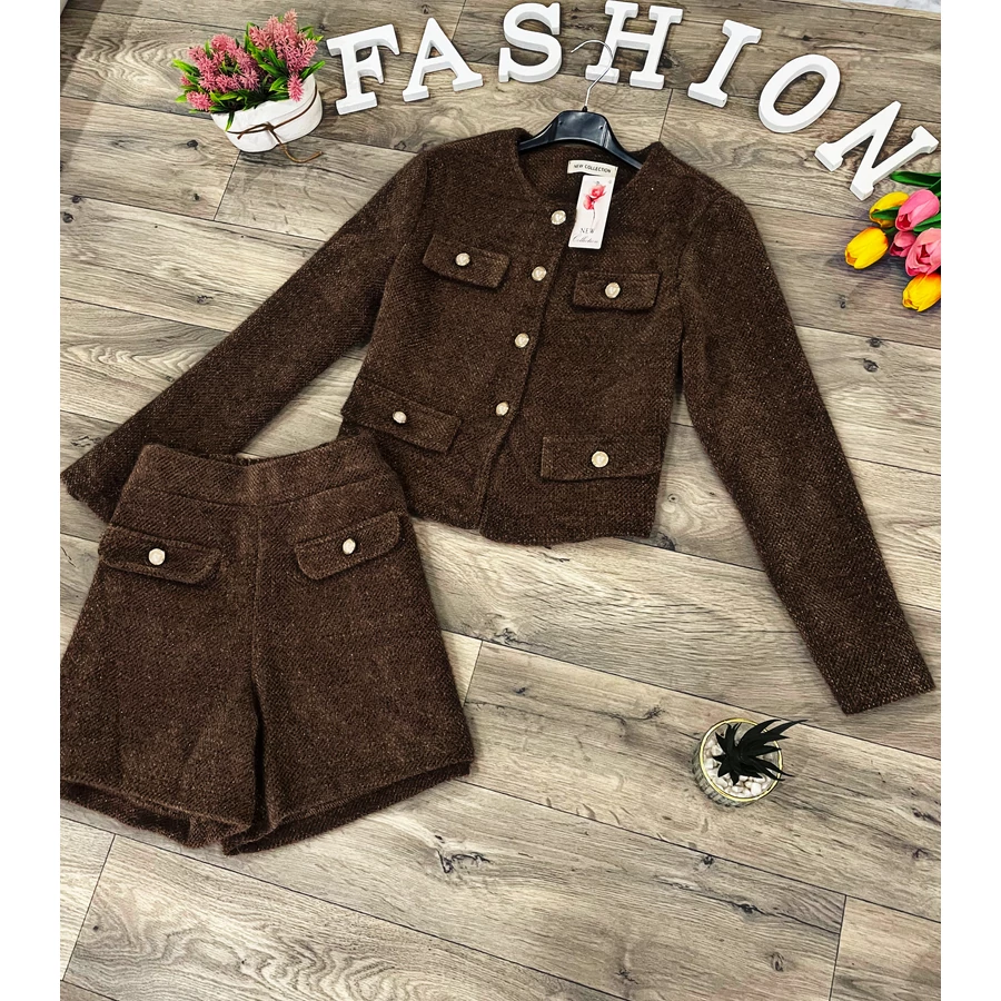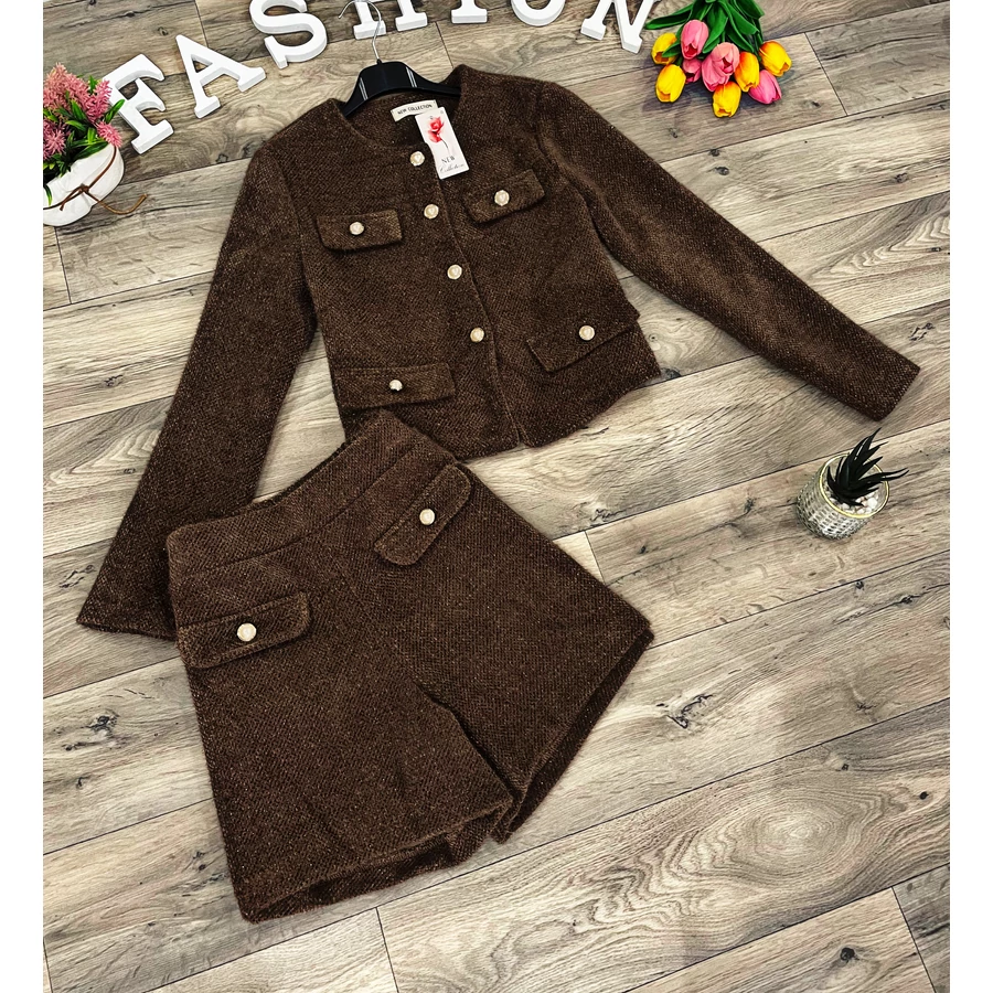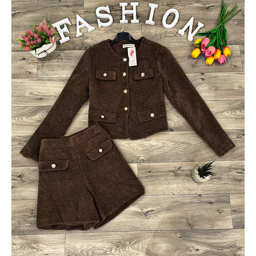Pihe-puha elasztikus anyagú kötött rövidnadrágos elegáns szett.
