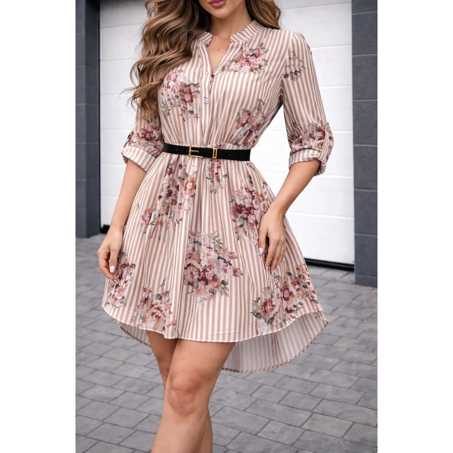 Lezser fazonú tavaszi ingruha virágmintával és műbőr övvel. XS-től XL méretig ajánljuk.