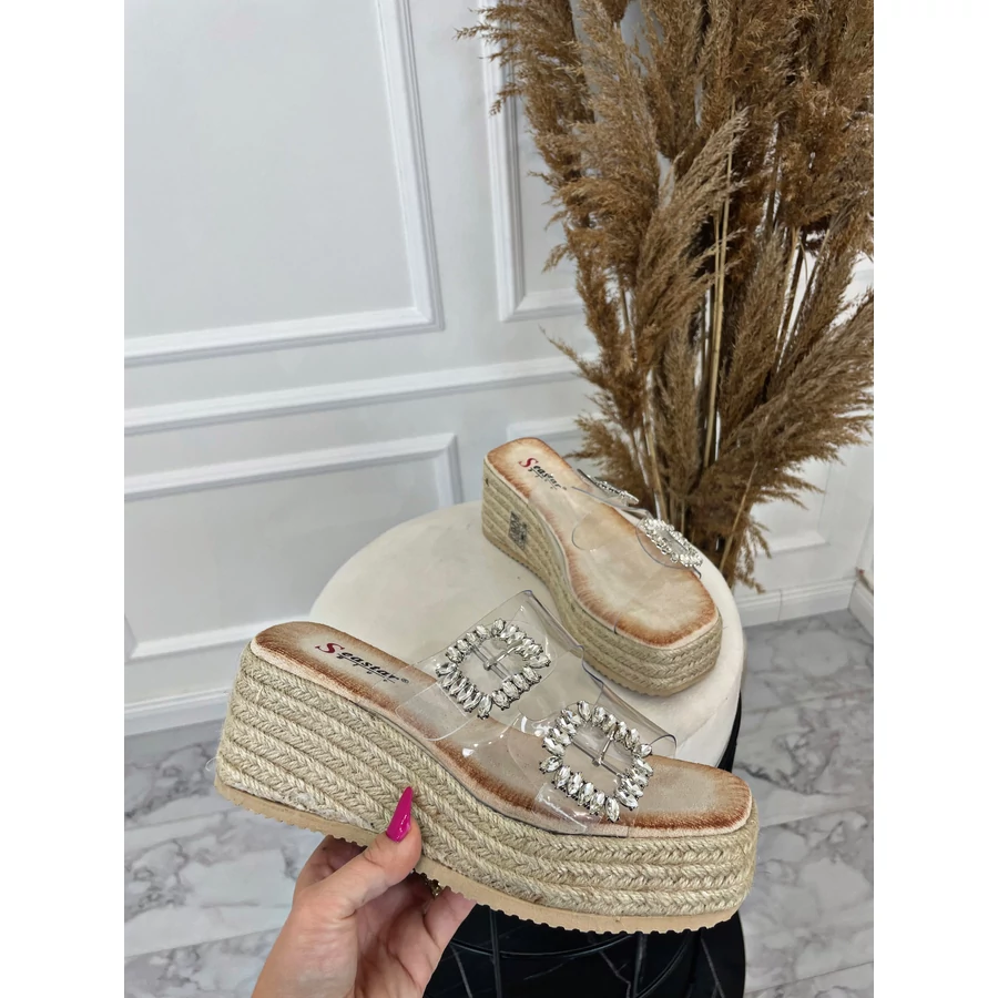 Talpa magasított és szivacsbetétes, pántjai pedig köves csattal díszítettek.