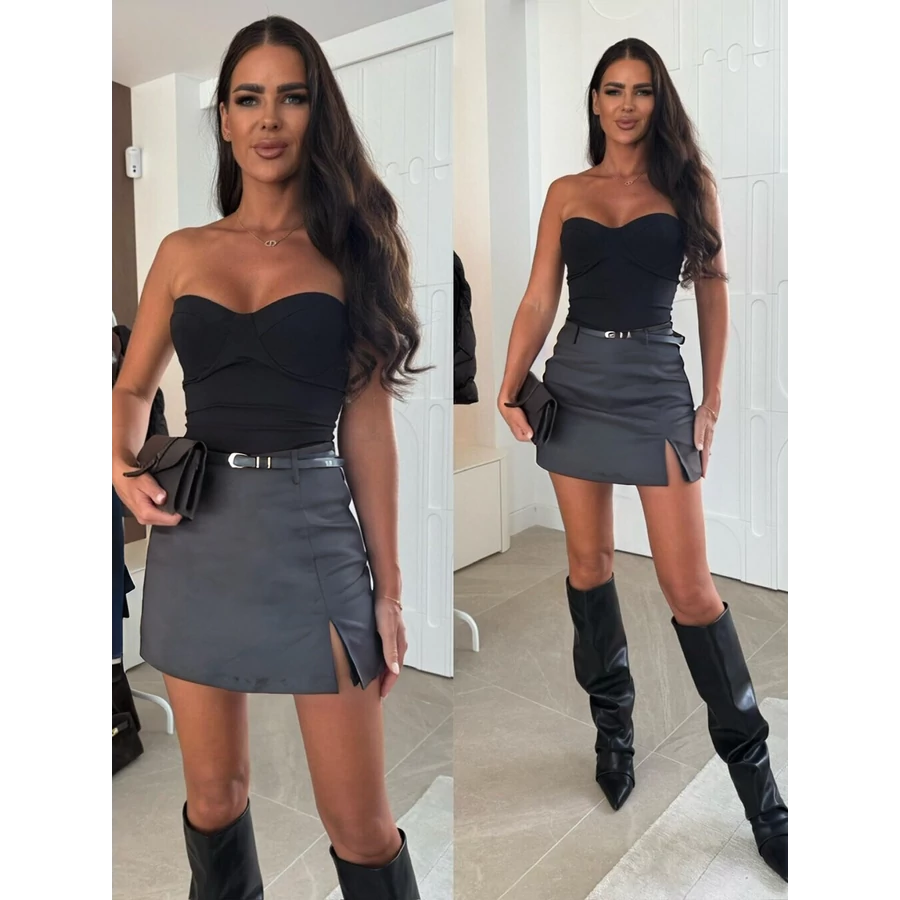 Fekete műbőr szoknya övvel