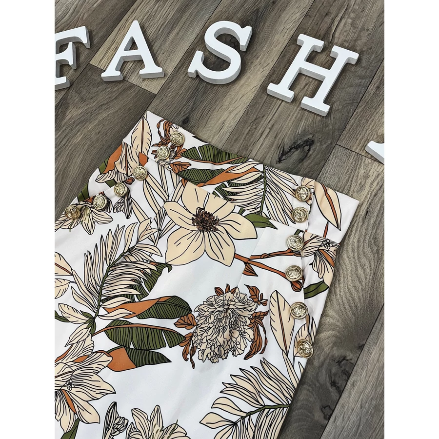 Hódítsd meg a nyári divatot ezzel a lenyűgöző, virágmintás szoknyával! Ez a könnyed, térd fölé érő szoknya tökéletes választás a meleg napokra, amikor a kényelem és a stílus egyaránt fontos. Az élénk és színes virágminták élettel töltik meg a megjelenésedet, miközben a gombos részlet és az A-vonalú szabás nőies és kifinomult megjelenést kölcsönöz.