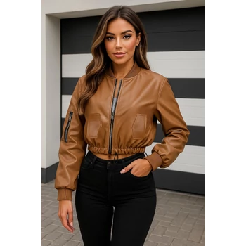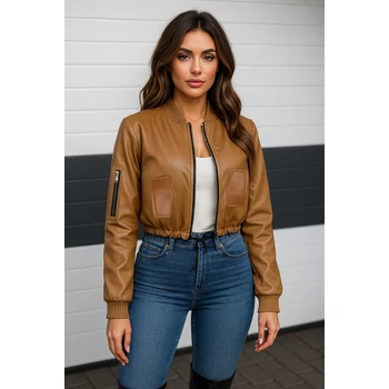 Műbőr anyagú rövid fazonú átmeneti kabát.