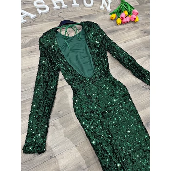 Hátán kivágott flitteres maxi ruha. Testhezálló fazon, anyaga rugalmas. XS-től M méretig ajánljuk. |