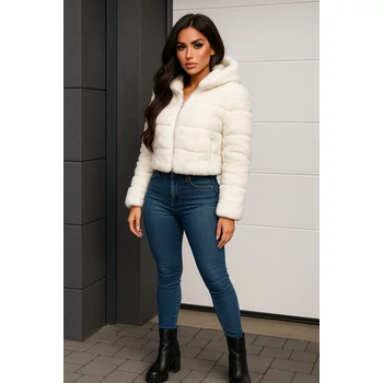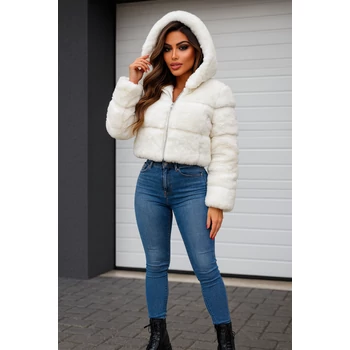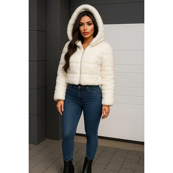 Rövid fazonú kapucnis szőrmekabát.