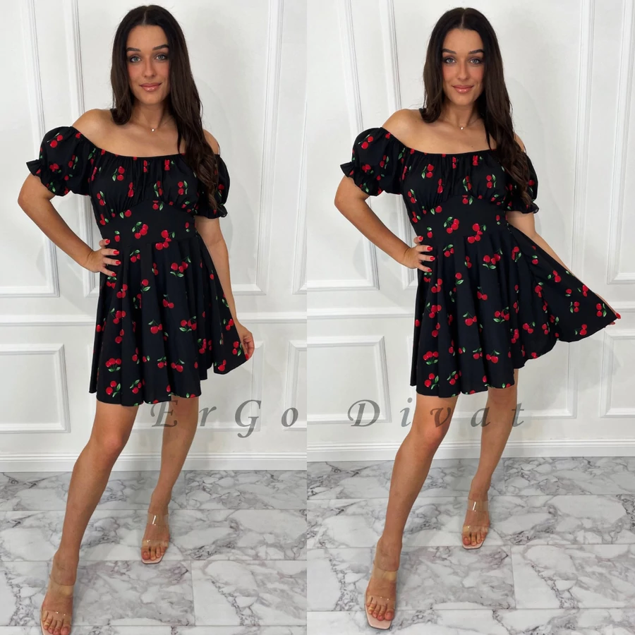JAMINA fekete cseresznye mintás ruha