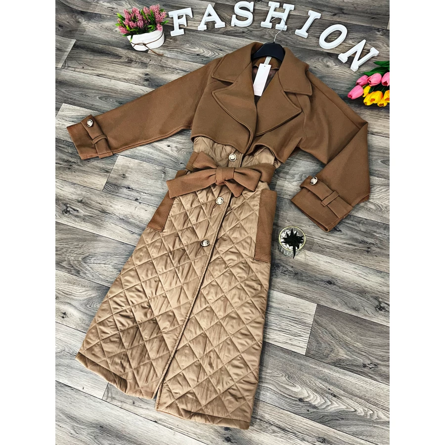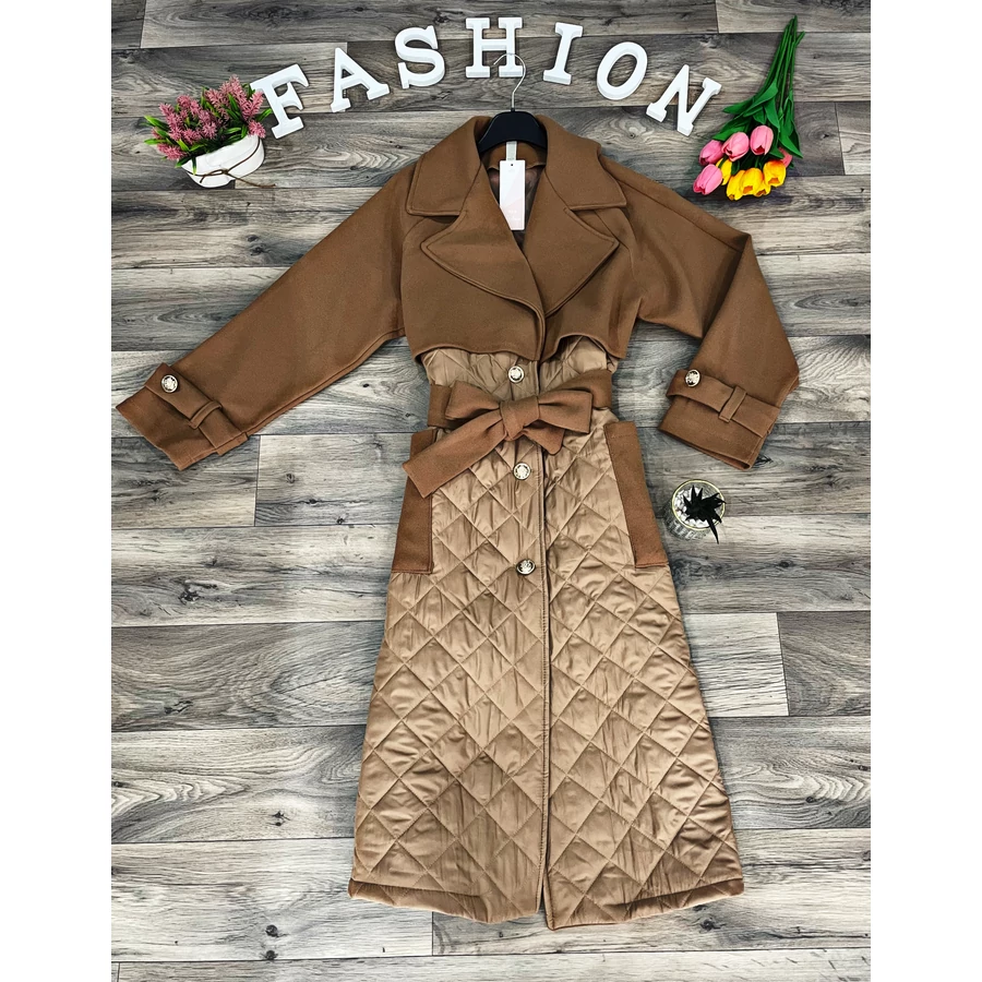 Hosszított fazonú bélelt kabát övvel.