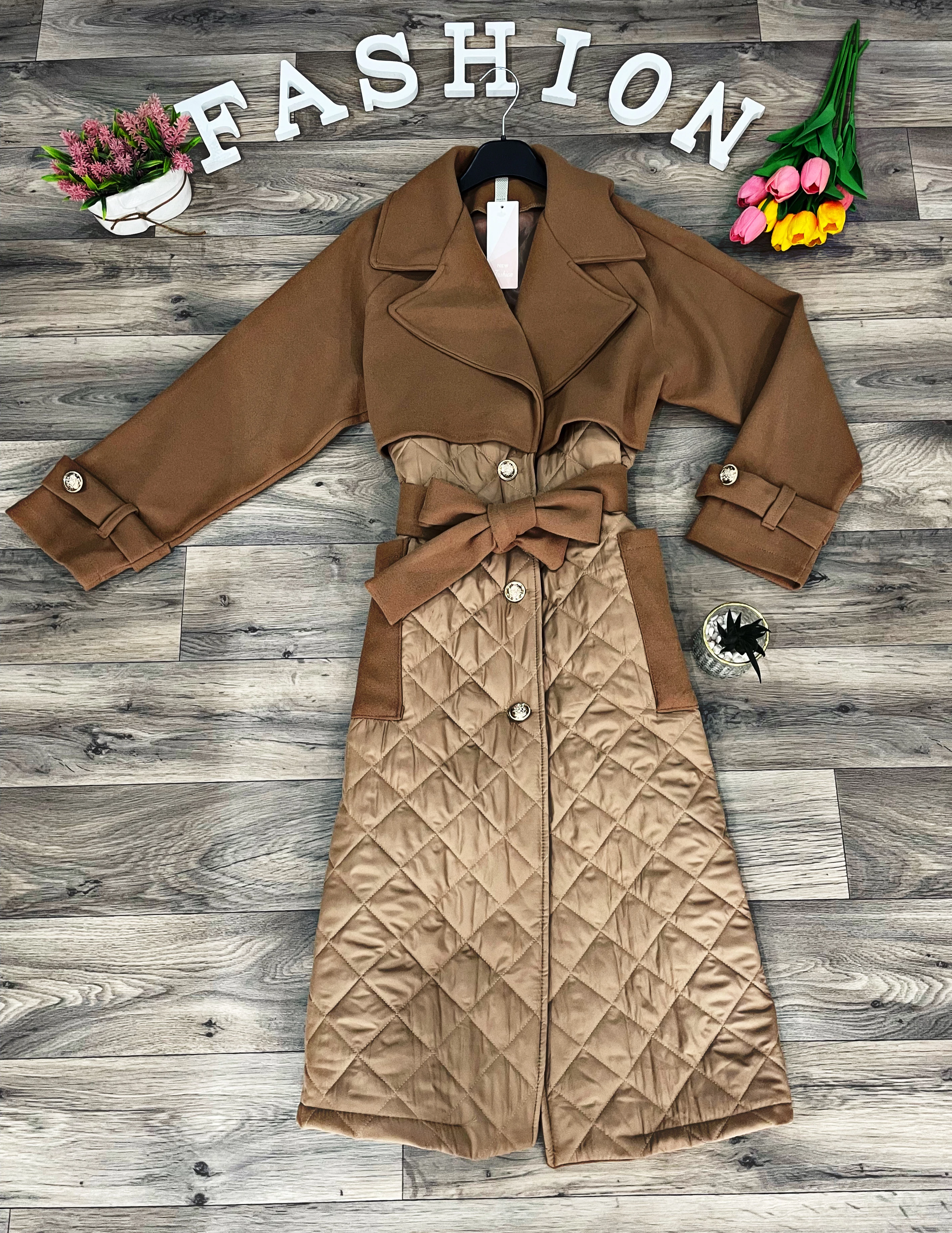 SABYNA barna hosszított kabát