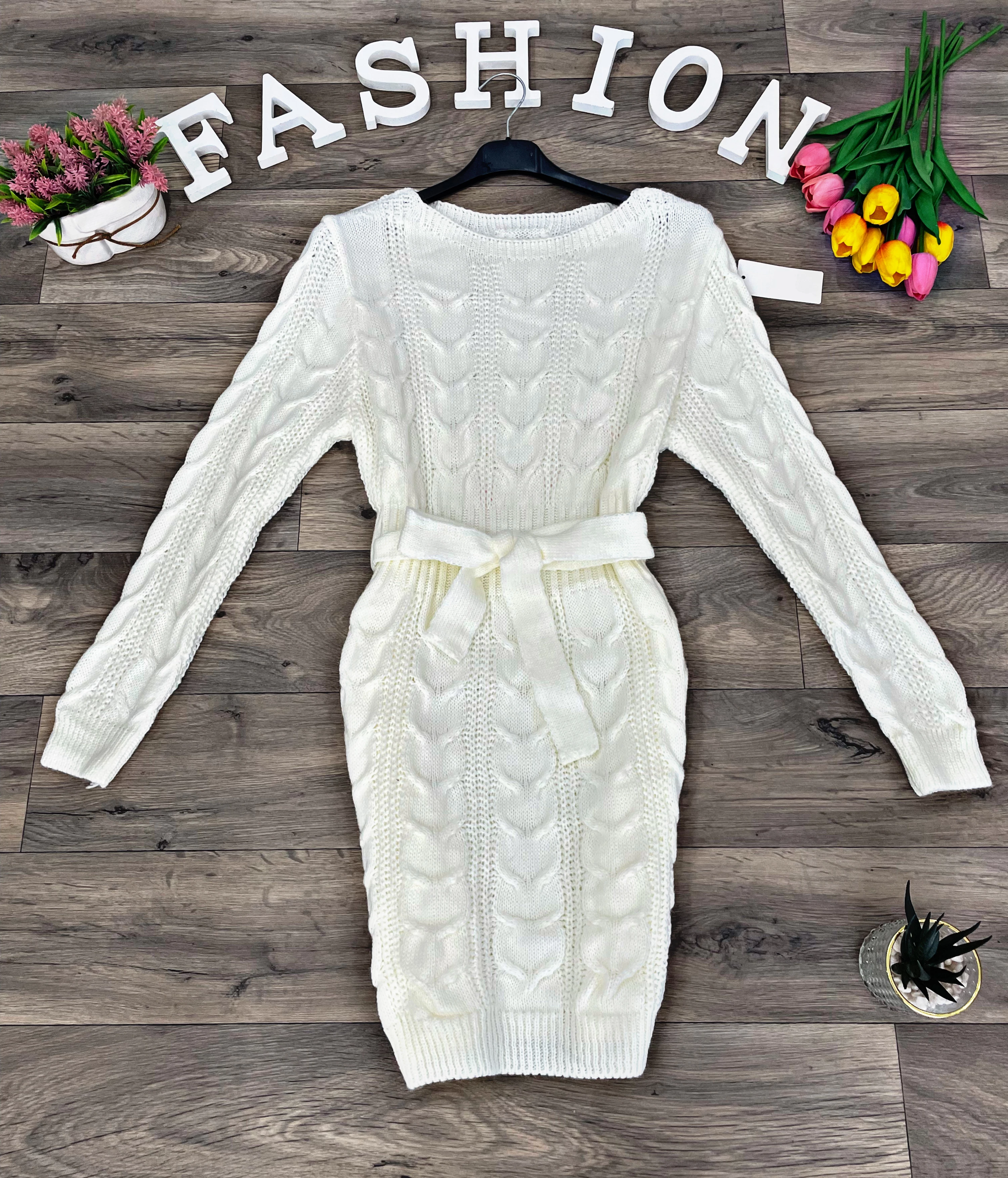 SAMIRA bézs kötött ruha inggel és műbőr övvel